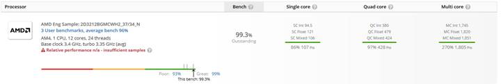 Model ismi belirtilmeyen işlemci 12 çekirdeğiyle 3.4 GHz’lik taban frekansta çalışırken zirve frekans olarak 3.7 GHz düzeyi hedeflenmiş. Bir epey düşük çalışma frekanslarına karşın AMD’nin Ryzen Threadripper 1920X’ten bu haliyle daha süratli olan yonganın asıl fark attığı test ise kayar nokta uygulaması olmuş.