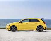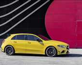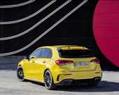 Dinamik ve güçlü bir dizayna sahip olan 2019 Mercedes-AMG A 35 4MATIC’in dış yüzünde karakteristik AMG ögeleri dikkat çekiyor. Çift çıtalı ön ızgara, geniş hava girişleri, tampon altı eklentisi ve gümüş krom süslemeler ön taraftaki ayrıntılar ortasında. Yan taraftan bakıldığında ise sportif görünümlü marşpiyeler ve 18 inçlik siyah hafif alaşım jantlar göze çarpıyor. Yeni difüzörlü art tampon, entegre tavan spoyleri ve çift egzoz çıkışı da 2019 Mercedes-AMG A 35 4MATIC’in öteki tasarım ögeleri ortasında.