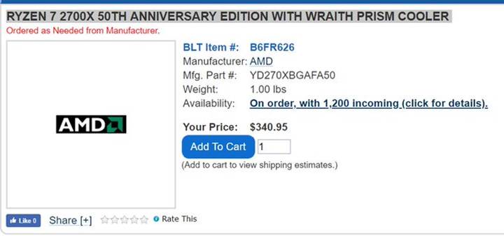 Buna rağmen daha yüksek saat suratları bekleyebiliriz. Enteresandır olağan Ryzen 7 2700X 380 dolar civarından satılırken geçtiğimiz günlerde kusur sonucu siparişe açılan 50. yıl modeli 340$’dan listelenmişti. Son olarak sonlu sayıda üretilmesi beklenen ikilinin 29 Nisan’da tanıtılması planlanıyor.