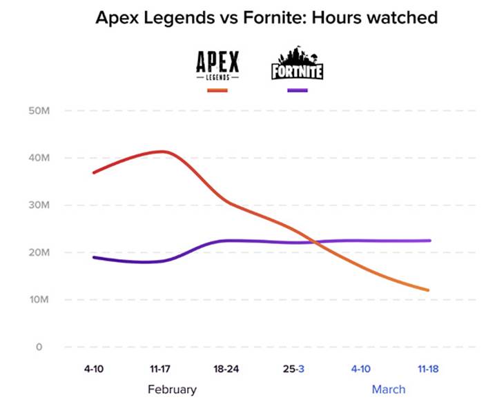 Battle royale tipine fırtına üzere giriş yapan ve birinci ayında 50 milyon satış sayısına ulaşan Apex Legends bu ivmeyi koruyamamış üzere görünüyor. Araştırmalar internet ortamında oyuna ilginin düşmeye başladığını gösteriyor.
