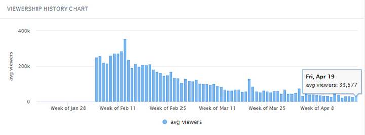 Yapılan araştırmalara nazaran en yüksek devirlerinde 350 bin anlık izleyici kitlesine ulaşan Twitch yayınları bu hafta 30 bine geriledi. Haftalık 40 milyon olan toplam izlenme saati ise şu anda 10 milyon saat civarında. Google aramalarında da büyük bir düşüş olduğu tabir ediliyor.