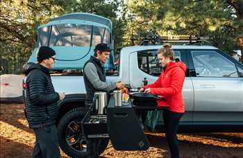 Rivian R1T Camper, 10 yıllık geçmişe sahip fuarda sergilenen birinci elektrikli araç olma özelliği taşıyor. Standart R1T elektrikli pickup’ın kendine has özellikleri, kampçı versiyonunda daha fonksiyonel bir hal almış. Örneğin; R1T’nin kabini gerisinde iki taraftan da ulaşılabilen geniş bir depolama tüneli bulunuyor. Bu tünel, aracın kampçı versiyonunda taşınabilir mutfağa dönüştürülmüş. Dışarı yanlışsız kaydırılabilen bu alan içerisinde pek çok çekmece, yemek hazırlamak için tezgah, su ısıtıcı ve elektrikli ocak mevcut. Bu ocak, aracın geniş batarya paketinden güç alıyor.