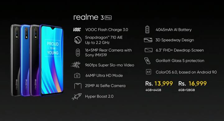 Android 9.0 üzerine kurulu Color OS 6.0 ile gelen Realme 3 Pro hoparlörlerinin oyunlara özel olarak hazırlandığı söyleniyor. IP sertifikası bulunmasa da toz ve su sıçramalarına dayanıklı. Ek olarak ısı dağıtımı konusunda özel olarak çalışıldığı söylenenler ortasında.